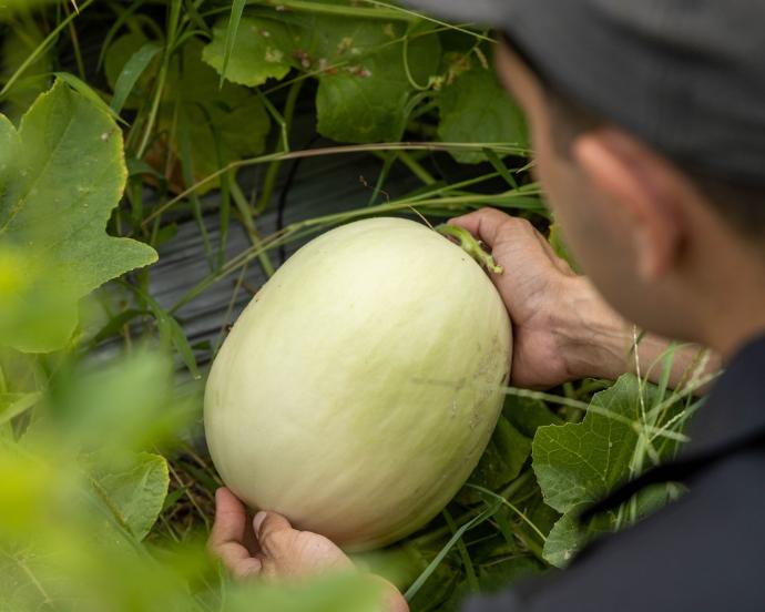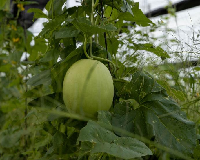 Melón Cantaloupe tipo Harper de larga vida. Forma ovalada, pulpa naranja y se cosecha en unos 55 días.