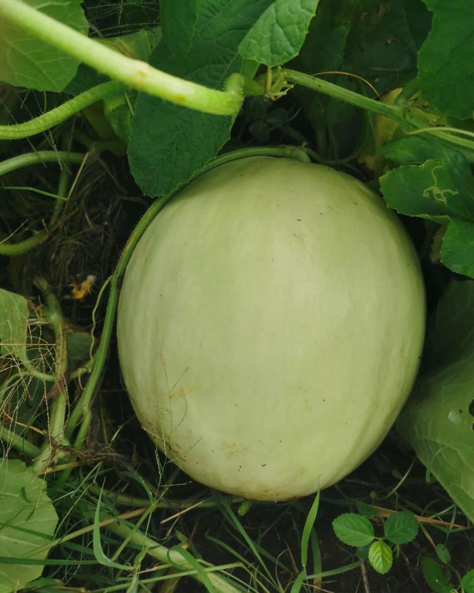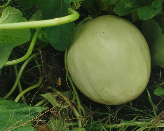 Es una planta vigoroso de forma redonda la cual tiene la piel color blanco verdeso con manchas verde oscuros.